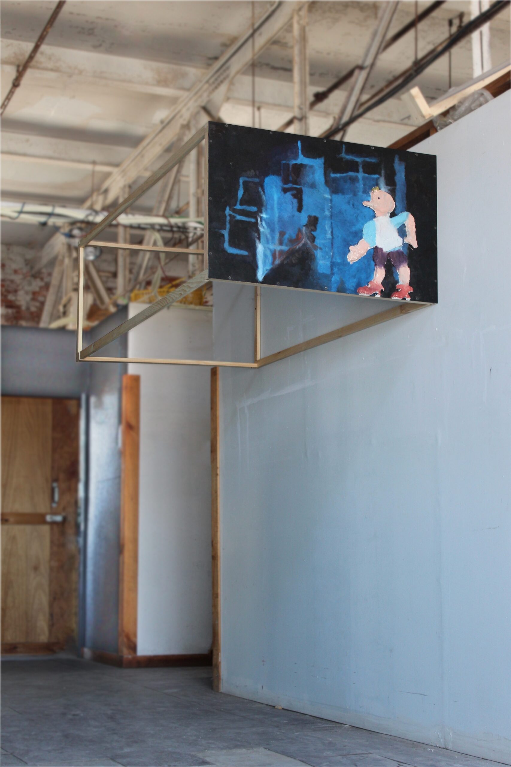 A sculptural painting with absurdist architecture. Thinking about physical infrastructure and supports.